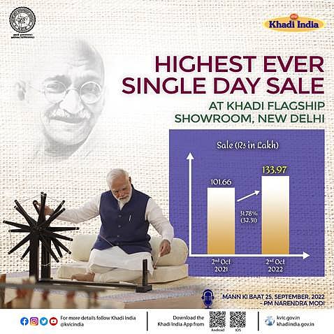Currently Prime Minister Shri Narendra Modi's appeal to buy Khadi in “Mann ki Baat” on 25th September, 2022, before 2nd October, has played a great role in achieving this benchmark record sale said Chairman, KVIC.