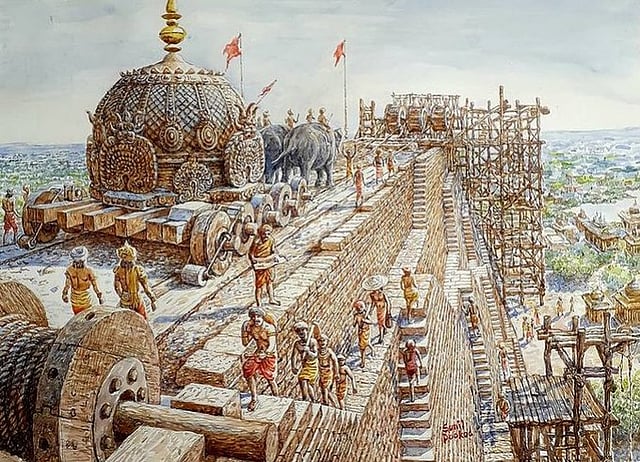 7. कई सिद्धांत मौजूद हैं कि 80 टन का पत्थर का टुकड़ा 200+ फीट टॉवर के ऊपर कैसे पहुंचा। कुछ लोग उत्तोलन तकनीक के उपयोग का सुझाव देते हैं, लेकिन अधिक प्रशंसनीय व्याख्या लगभग 6 किमी लंबी रैंप में पत्थर के टुकड़े को खींचने के लिए हाथियों का उपयोग प्रतीत होता है।