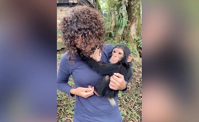 महिला से चिपक गया नन्हा चिंपांजी