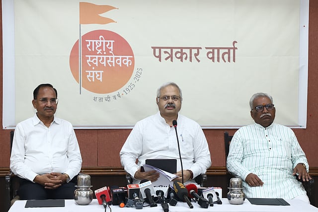 नागपुर के रेशीमबाग स्थित ठेंगड़ी सभागृह में आय़ोजित पत्रकार वार्ता राष्ट्रीय स्वयंसेवक संघ के अखिल भारतीय प्रचार प्रमुख सुनील आंबेकर जी ने श्री विजयादशमी उत्सव (02 अक्तूबर, 2025) के संबंध में जानकारी प्रदान की। इस अवसर पर मंच पर विदर्भ प्रान्त संघचालक दीपक जी तामशेट्टीवार और नागपुर महानगर संघचालक राजेश जी लोया भी उपस्थित रहे।